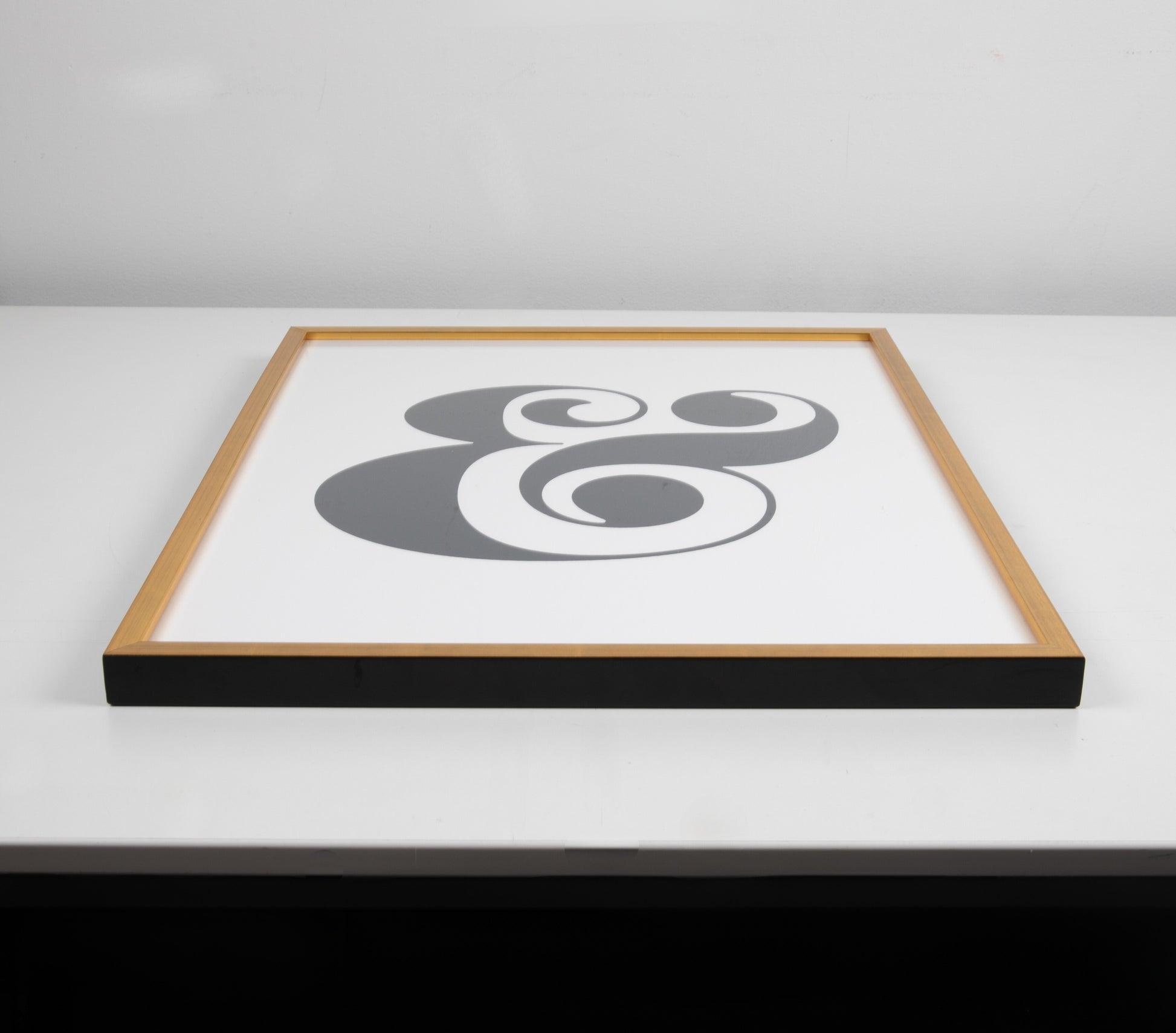 Add a stylish twist to your wall with this 20"x17" black and gold frame showcasing a bold ampersand (“&”) print. The contrast of the matte black border and shimmering gold accent gives this symbol of connection a sleek, modern edge. Perfect for pairing with other prints or standing strong on its own in a gallery wall, office, or living space.