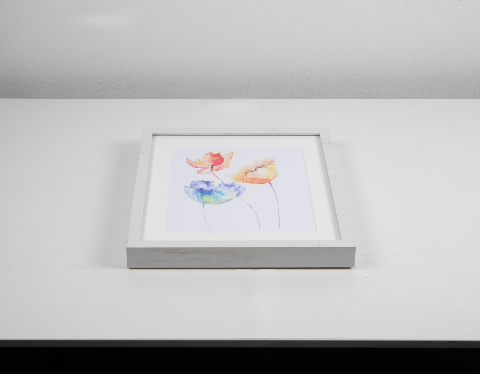 Multi-Colored Flower Watercolor Art with White Frame